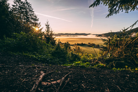Sunrise Morning Landscape in Franconia, Germany on a warm summer day