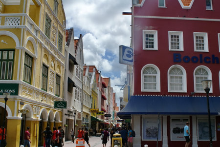 Willemstad, Curacao, Netherlands - Specific coloured buildings at street in Curacao