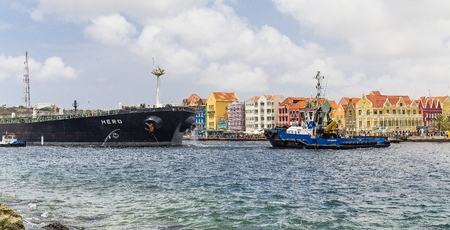 Curacao, Caribbean - october 2, 2012: View of Willemstad in Curacao. The city center, with its unique architecture and harbour entry.