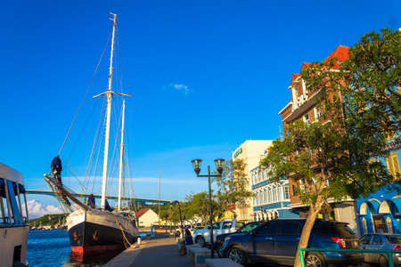 WILLEMSTAD, NETHERLANDS - JANUARY 23, 2018: View of downtown. Copy space for text