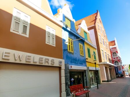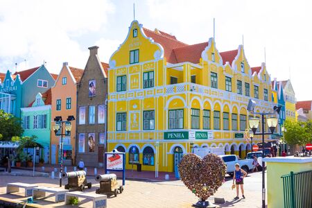 25 March, 2018, Willemstad. Curacao. Colorful buildings. Beautiful view of street in Netherlands Antilles