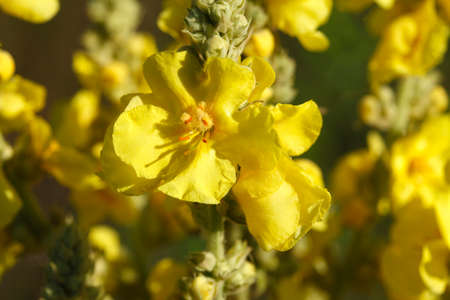 Nice and beautiful yellow flowers in park. Green natural concept.