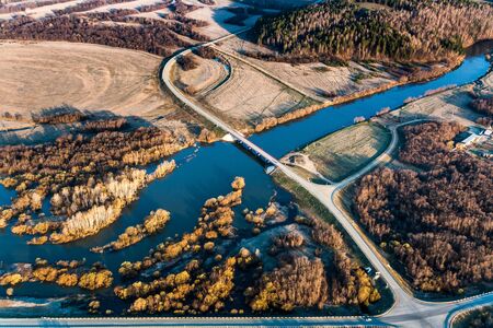 Aerial landscape of Nebraska Sandhills with the Middle Loupe River at Nebraska National Forest near Halsey