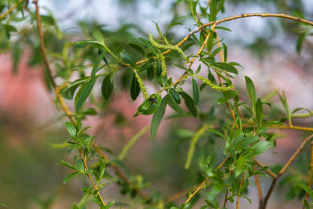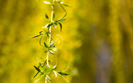 Branch of a willow in the spring close up