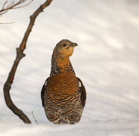 Female western capercaillie - Tetrao urogallus - on snow at the lek site in Norway