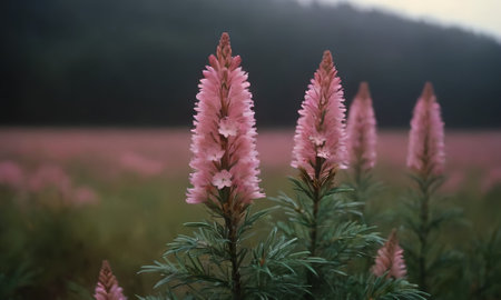 Brilliant fireweed wildflowers growing in a mountain meadow