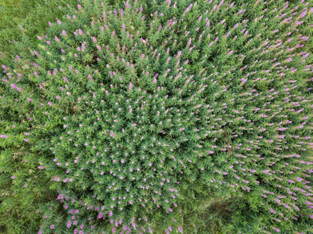 Field with pink flowers, Ivan tea. Photo from the drone. Concept, vacation, walk, summer. High quality photo
