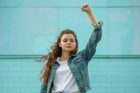 Confident activist raising her voice for change, standing up for justice and equality.