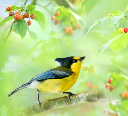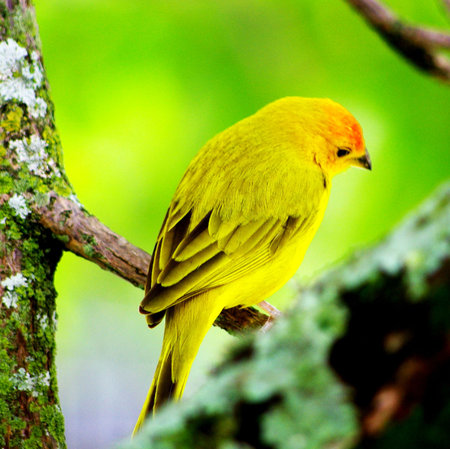 yellow little songbird on the branch