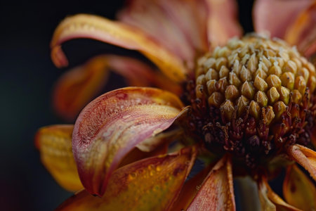 Closeup of a withered flower's intricate textures and colors