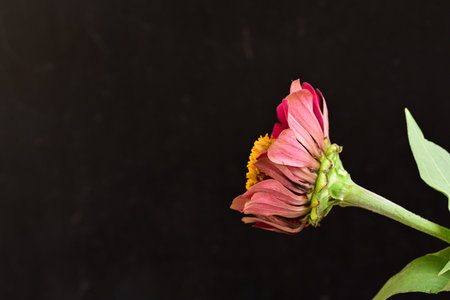 Zinnia flower isolated on black background with copy space for text