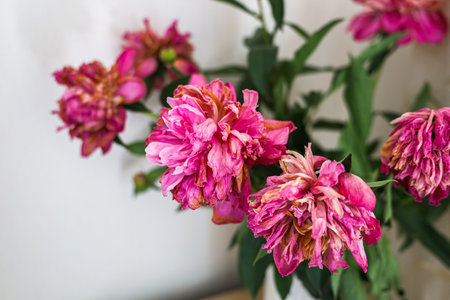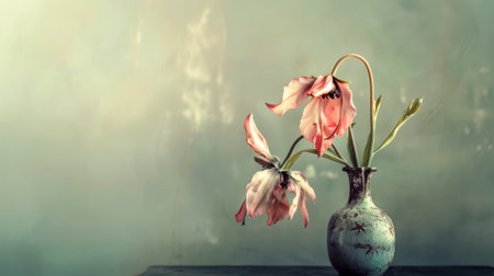 Wilting pink tulips symbolizing fleeting beauty and passing time