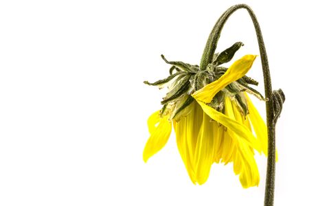 Withered sunflower on white background. Helianthus annuus.