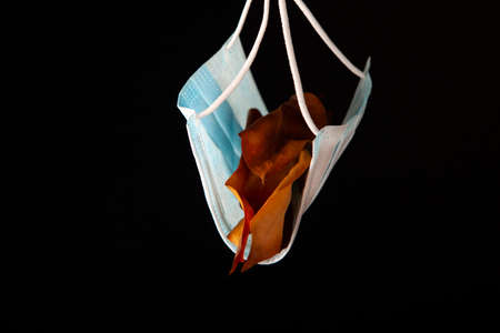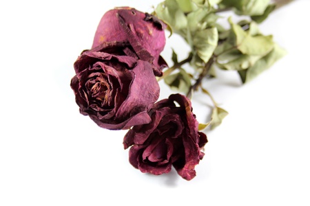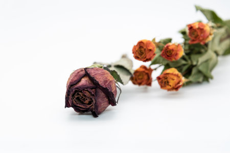 Bouquet of dried roses on dark background, dried out flowers, retro vintage style photo, death concept