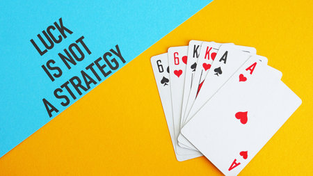 Luck is not a strategy is shown using a text and photo of cards