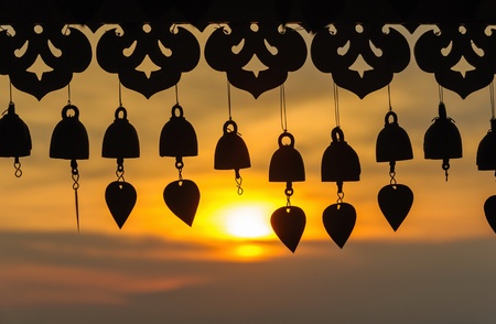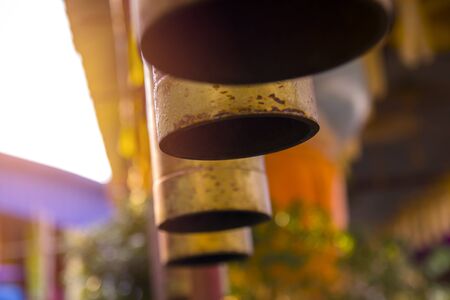 Bell of golden calm in a bright morning temple in sunshine.