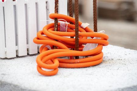 Plastic pipes to install electrical cables in a new construction.