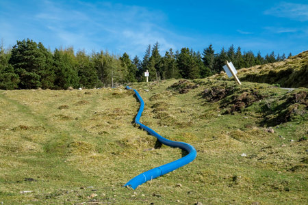 The blue water supply pipe coming from of Lough Anna, the drinking water supply for Glenties and Ardara - County Donegal, Ireland