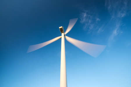 motion blade of modern win turbine in windy day with blue sky.