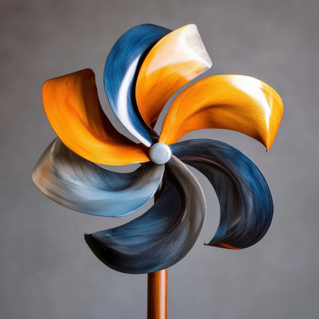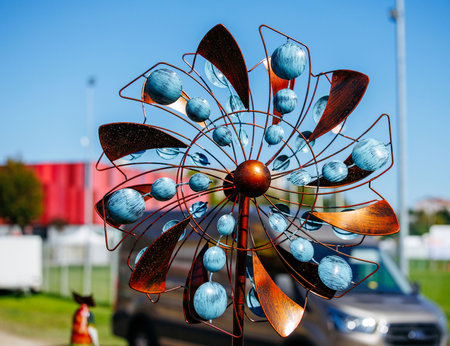 colorful spinning wind sculpture in a park, created with generative ai