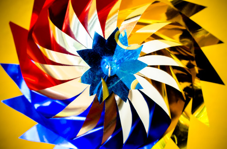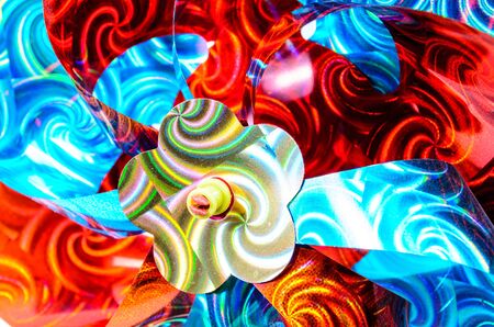 Colorful textile bright windmill, close-up, vortex motion,