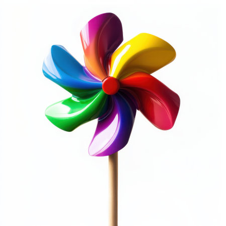 A Rainbow pinwheel spinning in breeze, proud symbol of joy and color