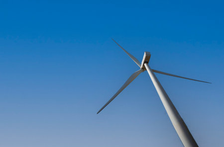Wind turbine in bright blue day