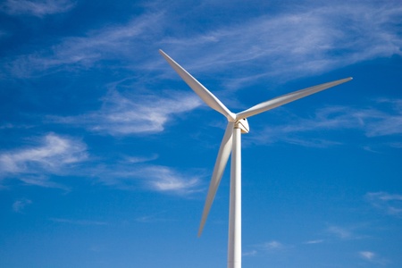 Wind turbine against blue sky