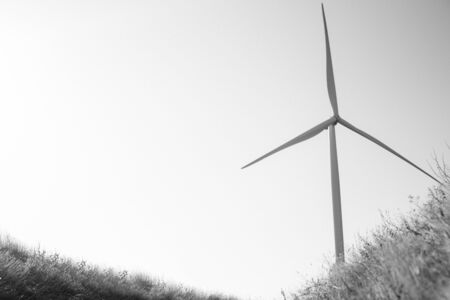 Wind turbine on sun light blue clear sky for clean energy eco power future sustainable electricity image concept
