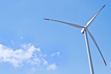 Wind turbine for electric power production with blue sky background