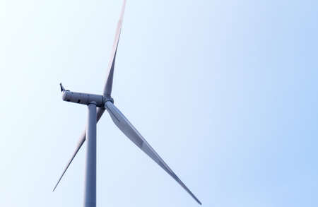 Wind turbine or windmill against the blue sky, close up image, ecology concept