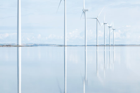 Windmills reflecting in danish Fjord