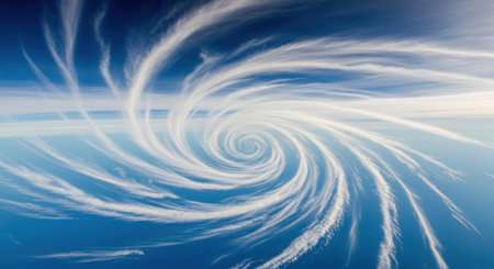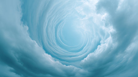 Experience the beauty of a swirling formation of clouds against a tranquil blue sky. This captivating image embodies serenity and natural elegance, perfect for artistic projects.