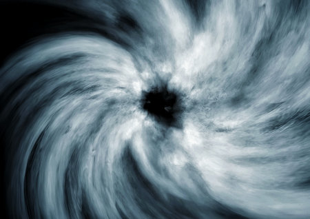 Ominous dark storm clouds are swirling, forming a vortex in the sky