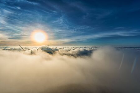 Golden Horizon: A Breathtaking Aerial View of Sunset Above the Clouds