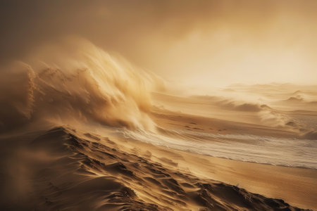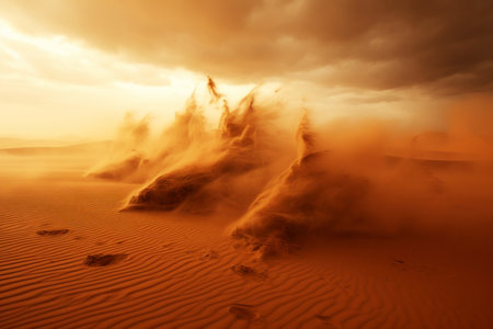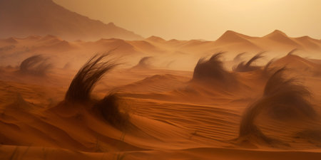 Massive sandstorm in the desert, the essence of nature and environmental awareness. Generative AI.