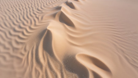 Sunlight illuminating windswept sand with gentle ripples creating a beautiful natural pattern in a desert environment, perfect for nature and travel related projects