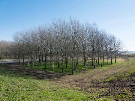 group of trees near motorway A27 in zuid flevoland near Almere in the netherlands on sunny winter day