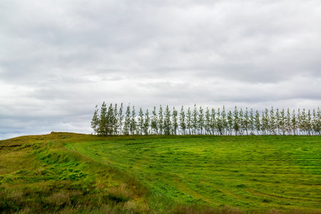 Row of trees acting as a windbreak in Iceland