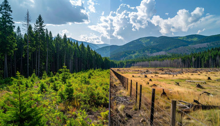 Juxtaposition of Deforestation and Lush Forests Highlighting Urgent Environmental Challenges Today