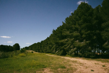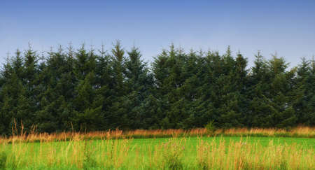 Beautiful rural landscape with pine trees.