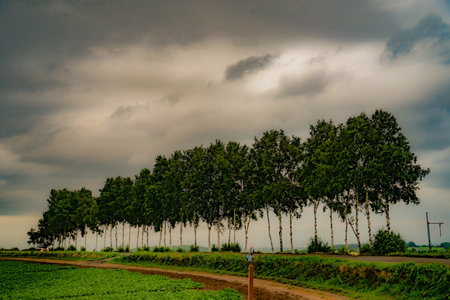 A row of beautiful birch trees in Hokkaido Tokachi region