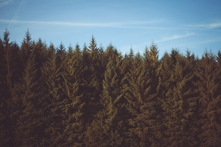 Landscape of coniferous forest with sky
