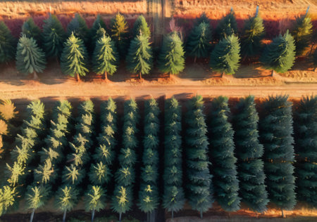 tree nursery with rows of young trees ready for planting, created with generative ai