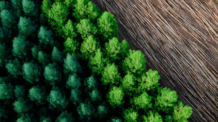 Visual contrast between deforested land and vibrant forest, symbolizing environmental impact, conservation, and climate awareness.