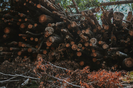 Pile of wood after clearing in Bavaria Germany