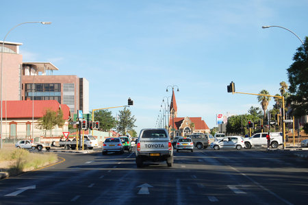 WINDHOEK, NAMIBIA - January 12, 2009: Daily traffic on Robert Mugabe Avenue in the capital city