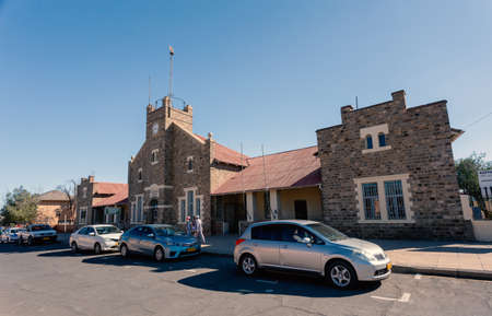 SWAKOPMUND, NAMIBIA - JUNE 30, 2017: The historic railroad station, now a hotel, casino and entertainment complex, in Swakopmund, in the Namib Desert on the Atlantic Coast of Namibia