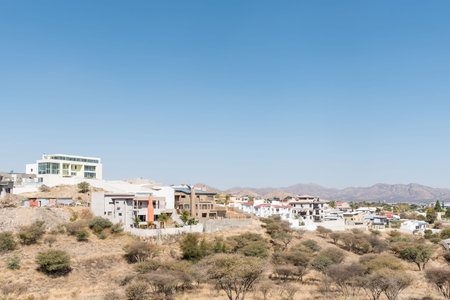 WINDHOEK, NAMIBIA - JULY 4, 2017: A view of Auasblick, a suburb of Windhoek, the capital city of Namibia