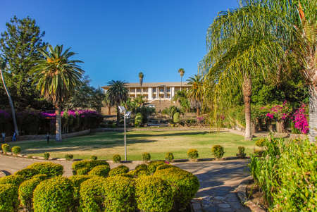 WINDHOEK, NAMIBIA - MAY 7, 2011: Street scene in Windhoek showing the original building of the Orban Primary school, now a government department offices